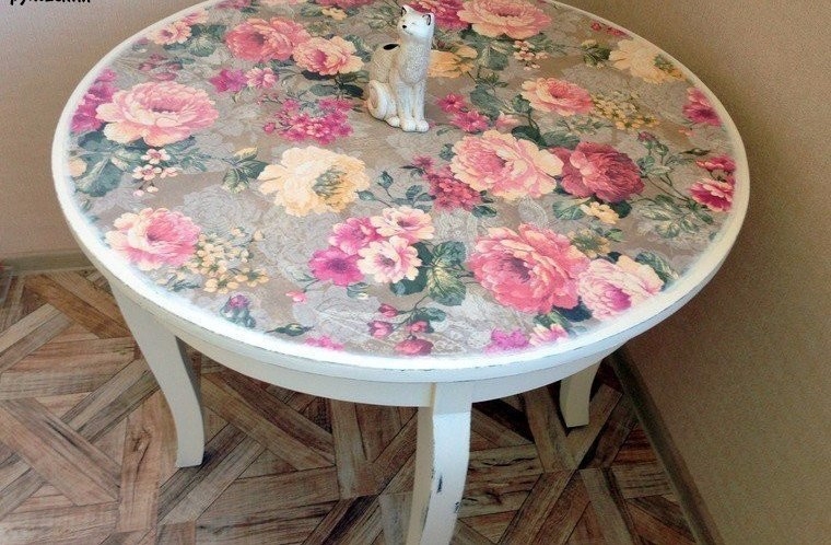 Ну хоть бы какое описание. Заинтересовалась и тут же разочаровалась. Как сделать, мне не понятно. А жаль. Хотелось бы тоже обновить столик.