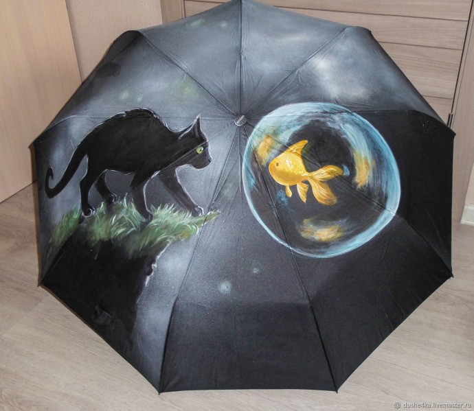Здравствуйте! Кто давал право использовать вам изображение моего зонта с черным котом и золотой рыбкой без моего разрешения? Я автор. Фото взято с моего сайта.