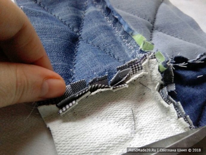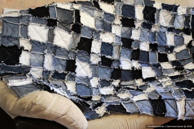 Теплое джинсовое покрывало в технике пэчворк