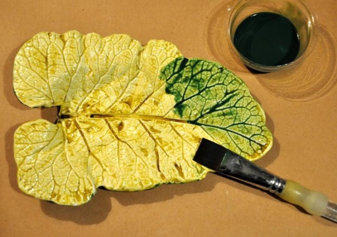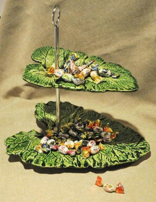 Гипсовое блюдо для хранения конфет или украшений "Листья"