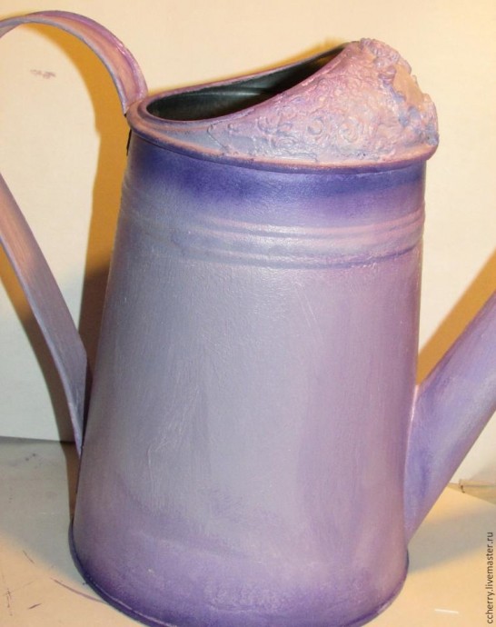 Мастер-класс по декору лейки в технике декупаж с различными декоративными приемами: фактурное грунтование, окраску, наклеивание распечатки, состаривание и золочение.