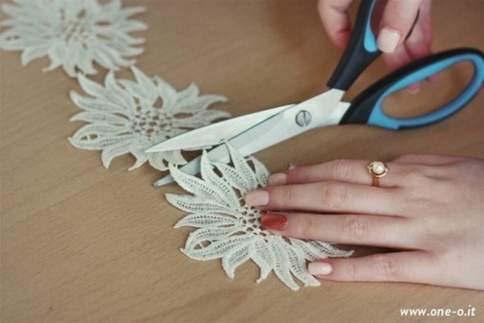 Топ — это то, что можно носить отдельно, без пиджака. А для красивой вставки в вырез пиджака хватило бы трёх кружевных цветочков, прикреплённых на кусок ткани с липучками...