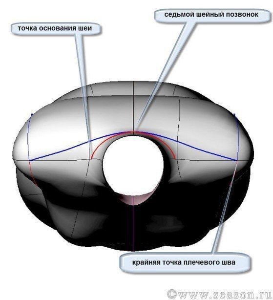 Разница между двумя расчётными величинами - шириной горловины переда и шириной горловины спинки (линии красного цвета на фото) является горизонтальным балансом изделия.