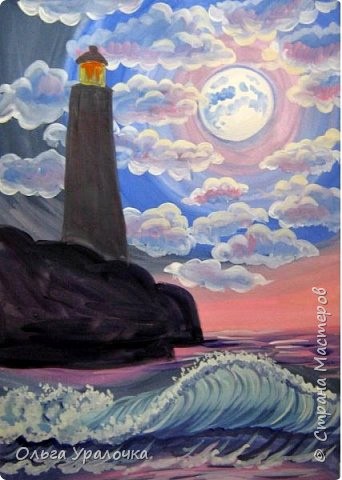 Рисуем пейзаж с маяком, чтобы не потерять маяк надежды, зовущий к морю.