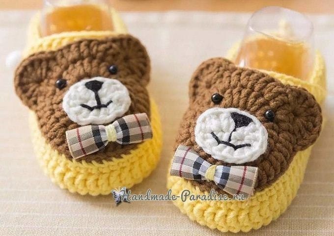 Пинетки с медвежатами крючком настолько очаровательны, что кому-то может захотеться сделать такими и взрослые тапочки.