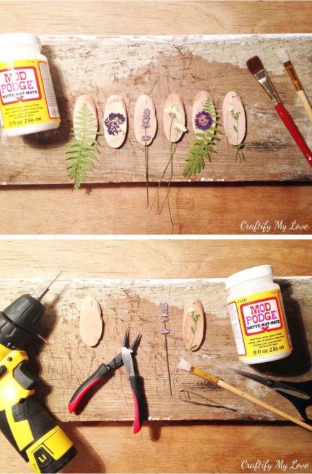 Аппликации из растений на спилах дерева придадут уют и неповторимость вашему дому.