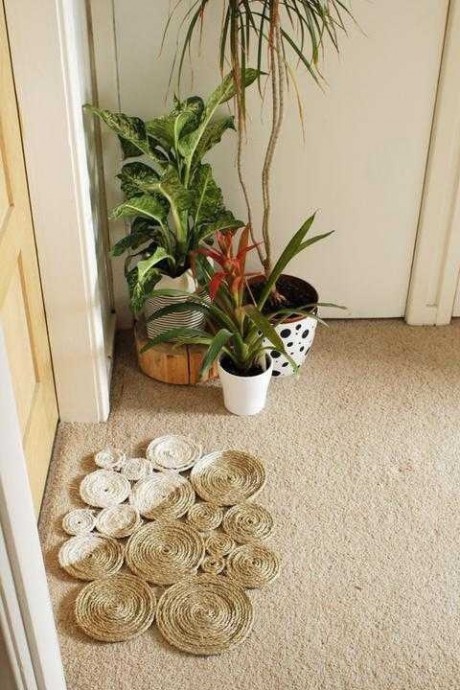 Коврик из верёвки своими руками, сделанный с помощью клея - это самый простой ковер.