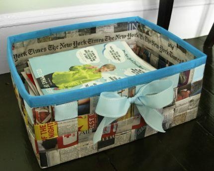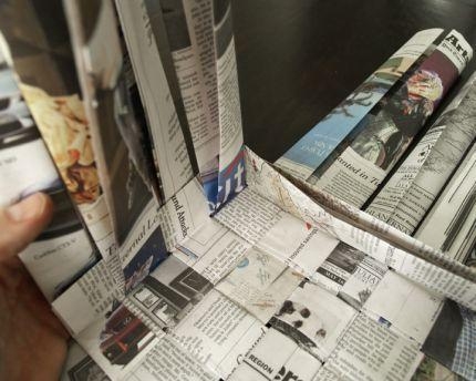 Корзинка из газетных полосКорзинка из газетных полос намного прочнее и долговечнее, чем может показаться на первый взгляд.Только избегайте контакта с влагой.