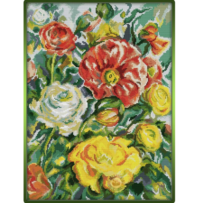 Нежные бело-розовые бутоны отражают застенчивость и чистоту помыслов. Чем ярче краски на полотне, тем сильнее желания и страсти, отраженные на нем. Букеты алых роз, как правило, вышивают страстные, чувственные натуры. А охапка желтых цветов символизирует рассудочность, спокойствие и стремление к достатку.