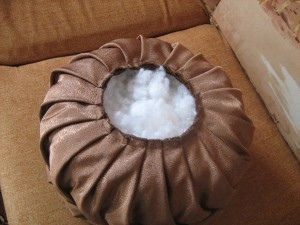 Круглая подушка в интерьерНабивать лучше всего шариками холофайбера.