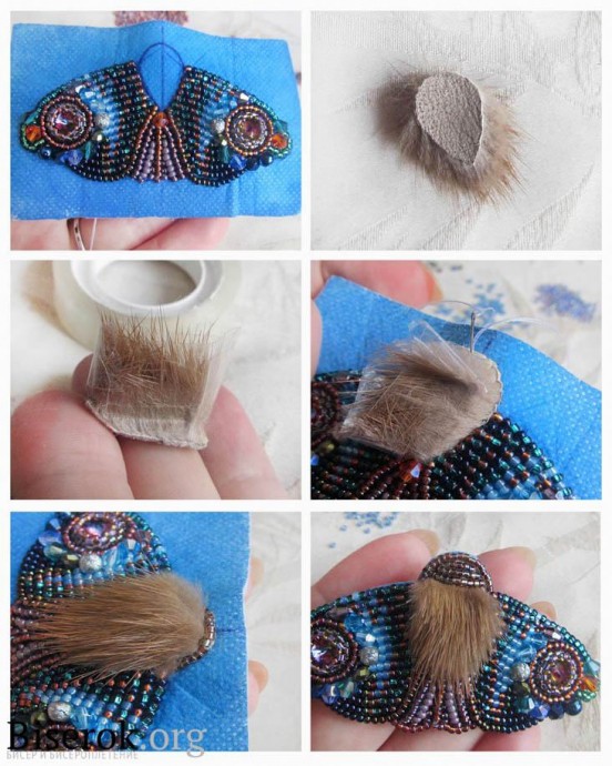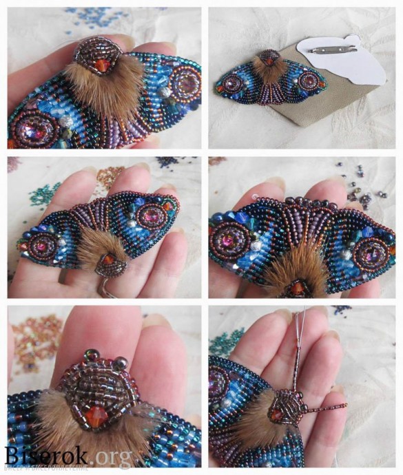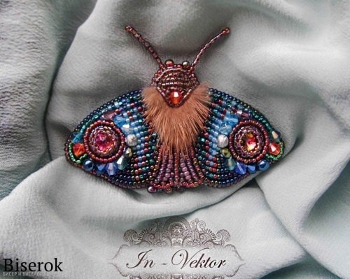 Брошка мотылёк из бисера обладает повышенной мохнатостью для большей прадоподобности.