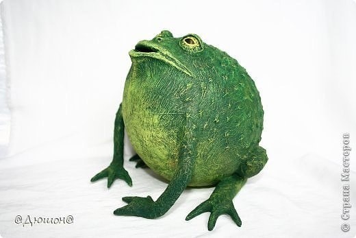 Копилка жаба в технике папье-маше поможет скопить денег на мечту.