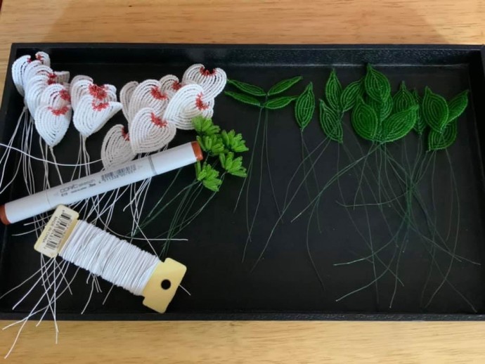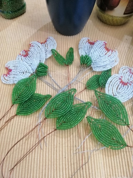 Нежные цветы из бисера будут долго радовать вас даже в самой простой белой вазе.