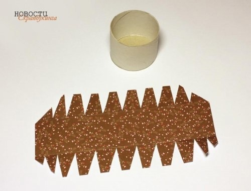 5. Из бумаги для скрапбукинга вырезаем полоску для внешнего декорирования. Не забудьте к высоте основы прибавить несколько сантиметров для зубчиков с каждой стороны.