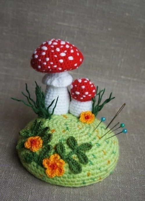 Игольница-грибок настолько милая, что отличное настроение будет каждый раз, когда вы будете ею пользоваться.