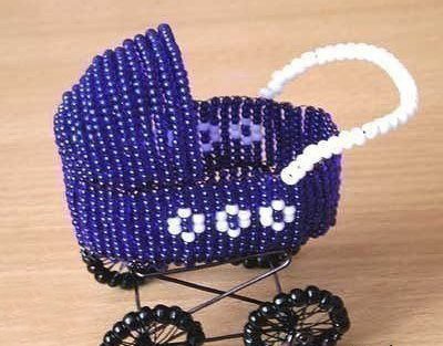 Колясочка из бисера может стать как украшением дома, так и детской игрушкой.
