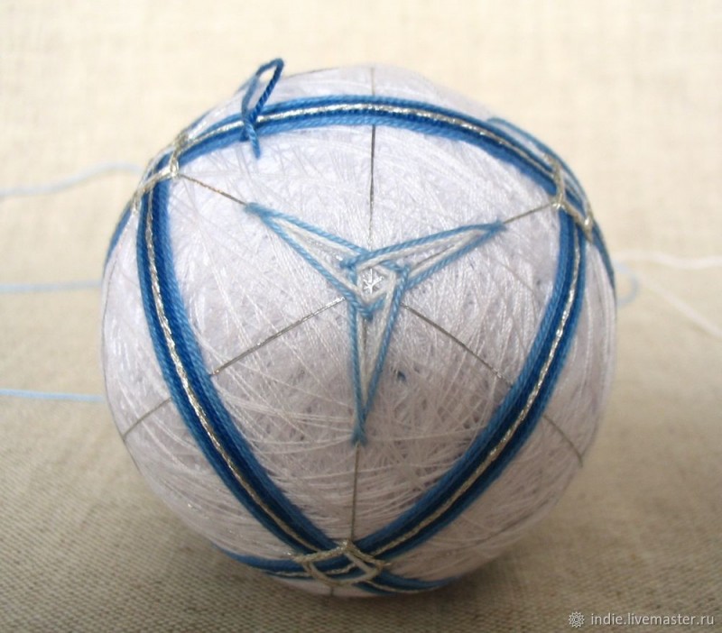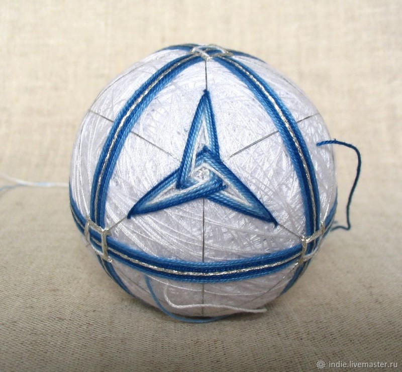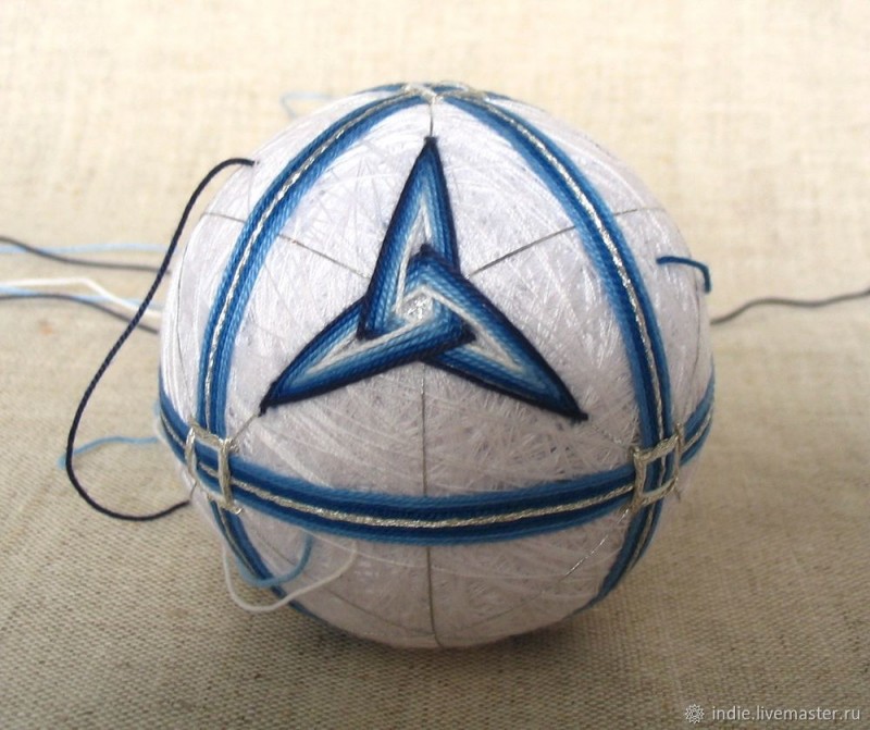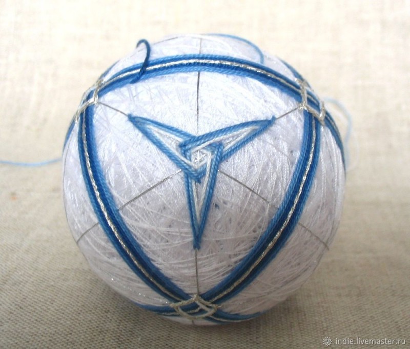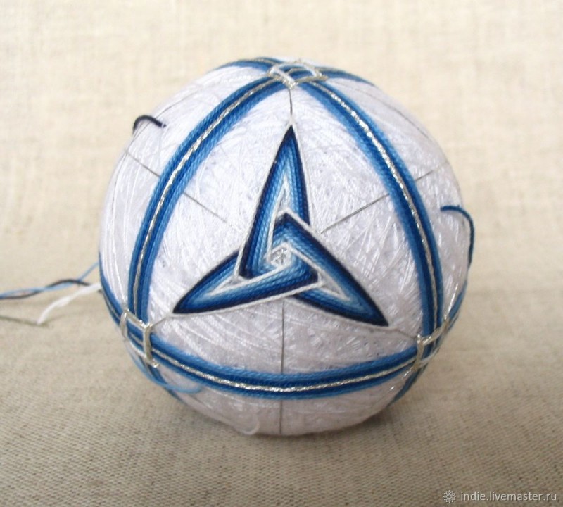 Темари или искусство вышивки на шарах: целующиеся треугольники