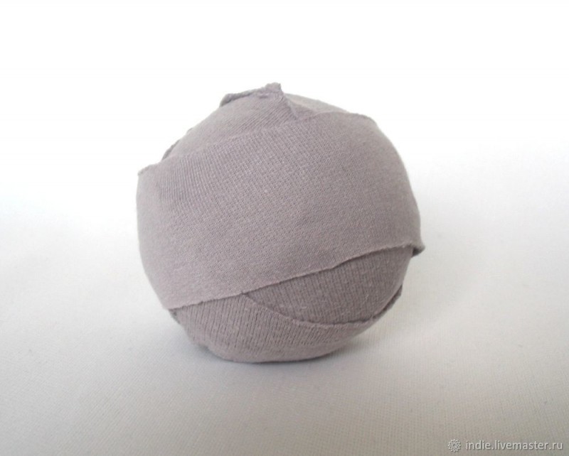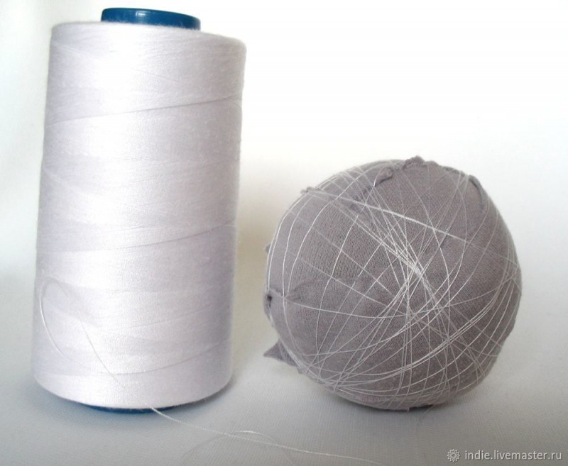 Стараемся тянуть нить с одинаковым усилием, постепенно сглаживая неровности. Когда ткань перестанет просвечивать, помотаем еще немного. Шарик должен получиться достаточно плотным.