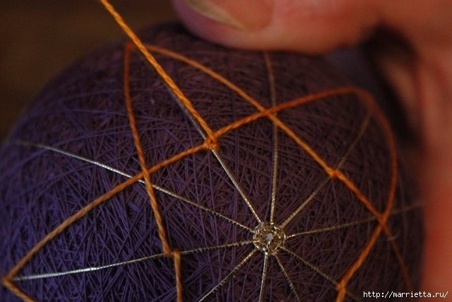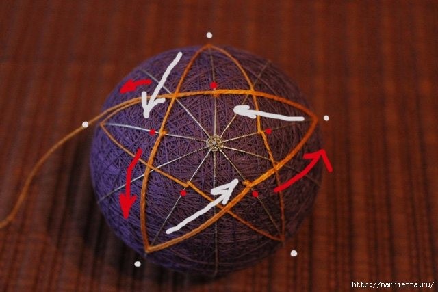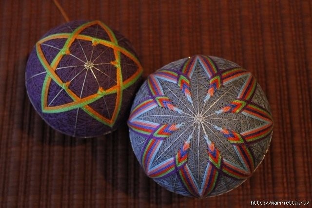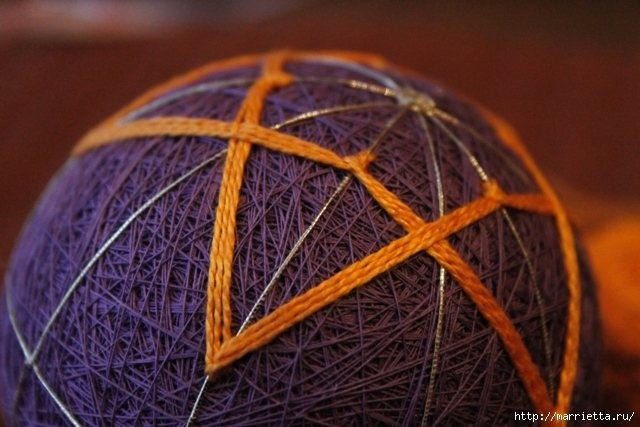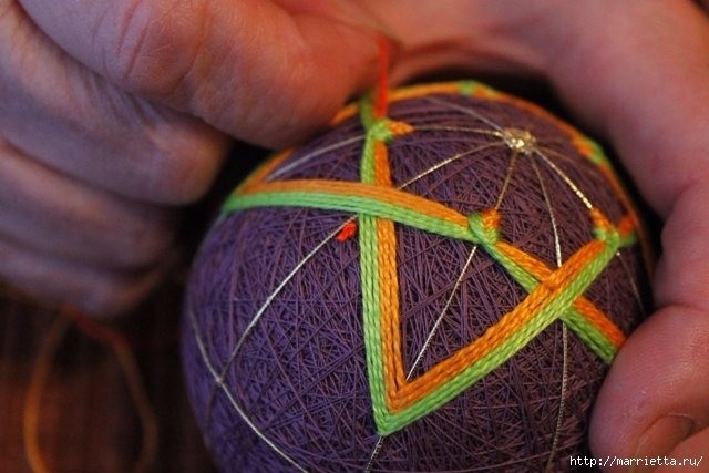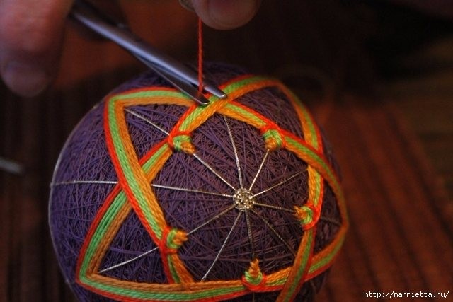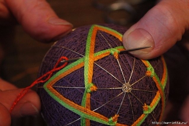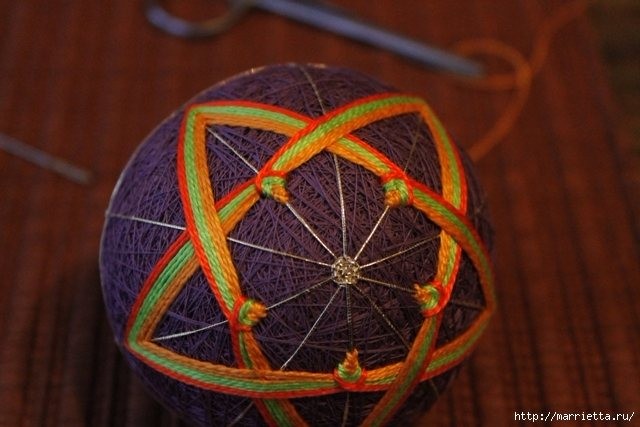 Темари или искусство вышивки на шарах: стрельчатый цветок