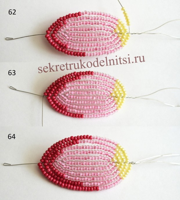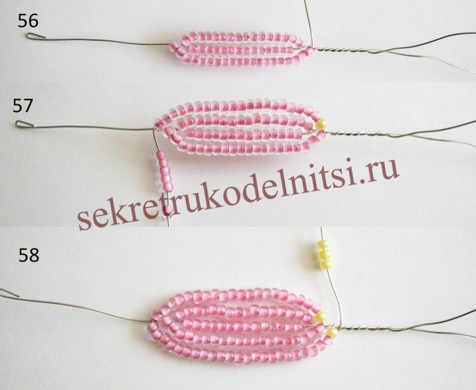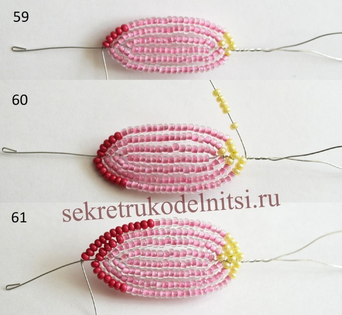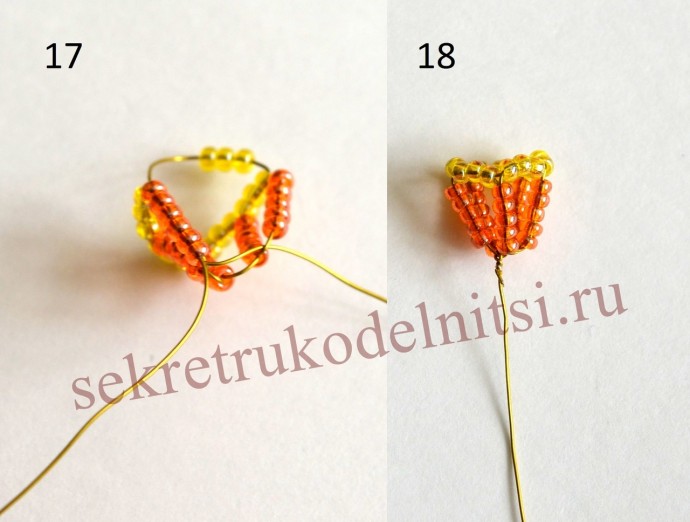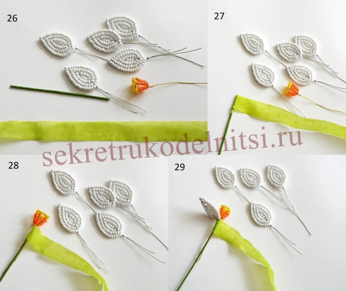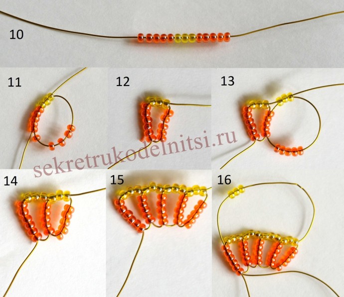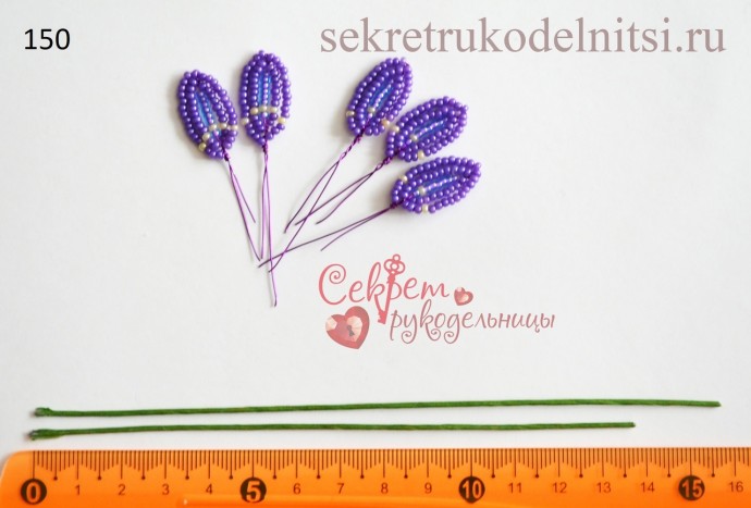 Пышное цветение весныАвтор Светлана Лана.Отрезаем длинную проволоку. Нанизываем черный бисер. Замыкаем в круг. Дальше нанизываем желтыми как палочку. Это тычинки.Фигурные лепестки ...