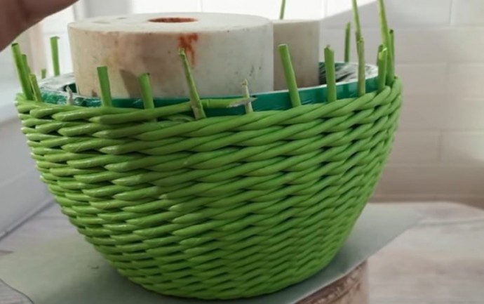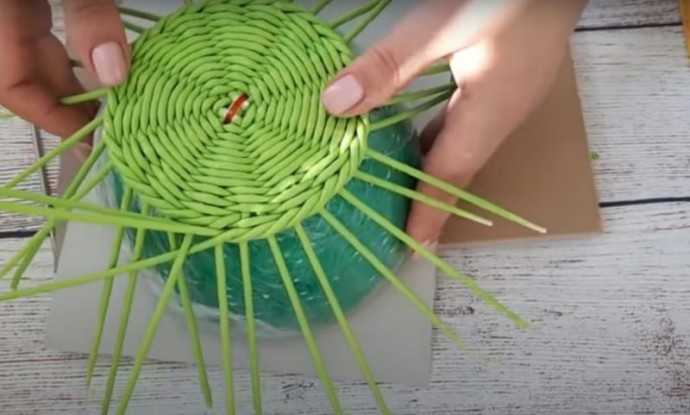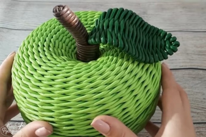 Роскошная шкатулка-яблоко из газетных трубочек ничем не уступит шкатулке, которая сплетена из лозы.