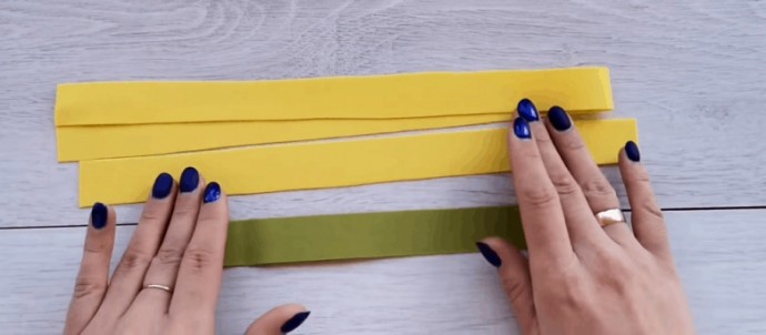 Длинна желтой полосы, необходимой для изготовления 1 одуванчика составляет 90 см, а зеленой — 20 см.