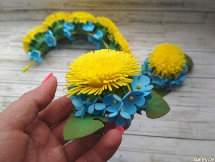 Удивляющие своей реалистичностью, не теряющие формы одуванчики из фоамирана выглядят потрясающе. Использовать их можно для украшения заколок, резинок, ободков, а так же для букетов, композиций и прочих интерьерных украшений. Техника изготовления предельно проста. При этом получившиеся на выходе одуванчики даже не подумают поникнуть. Они будут выглядеть, словно только что сорванные, даже после длительной носки.