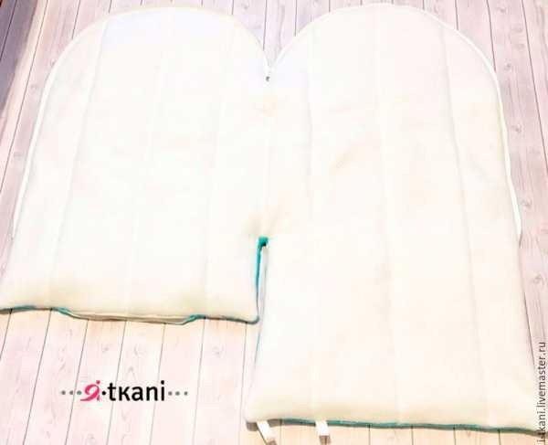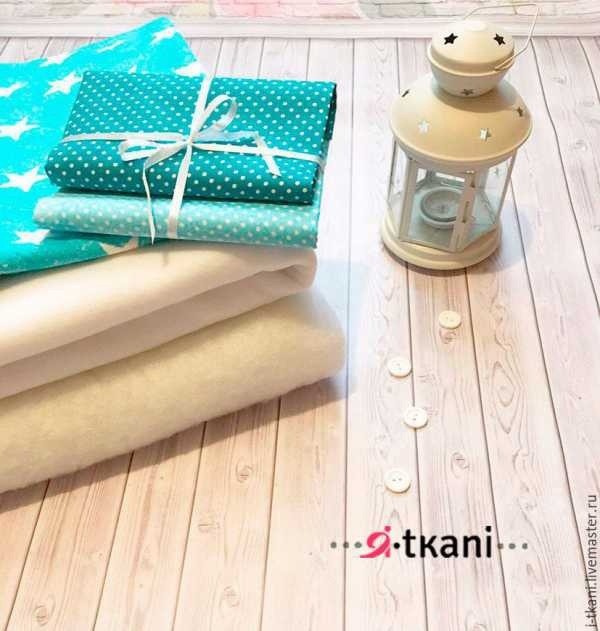 - 2 отреза 100х100 ткани (в моем случае это будет — очень красивый бирюзовый капитоний в сочетании с белым двусторонним флисом, который добавит нежность и уют нашему изделию);