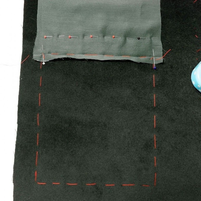 Обработка накладного кармана с двойной подкладкой