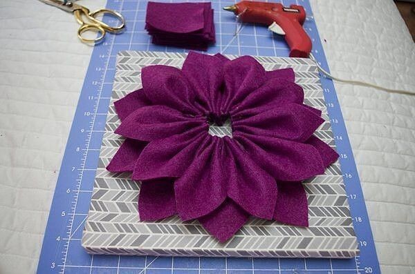 Объёмный цветок из фетра может быть использован как картина на стене.