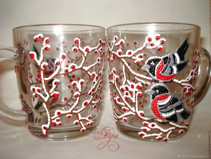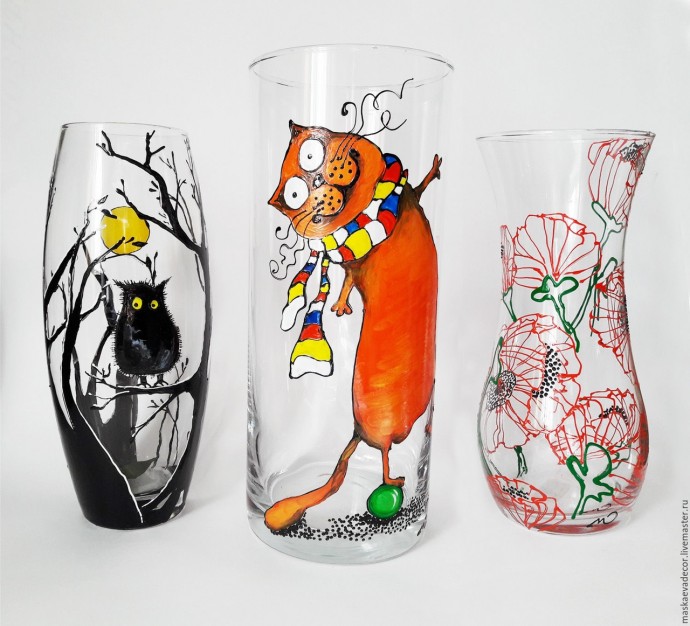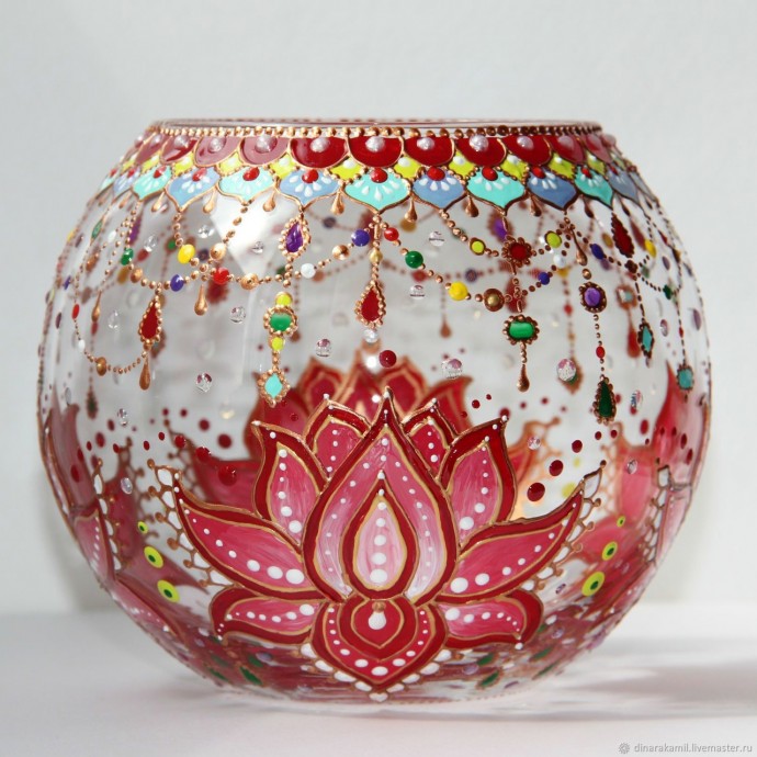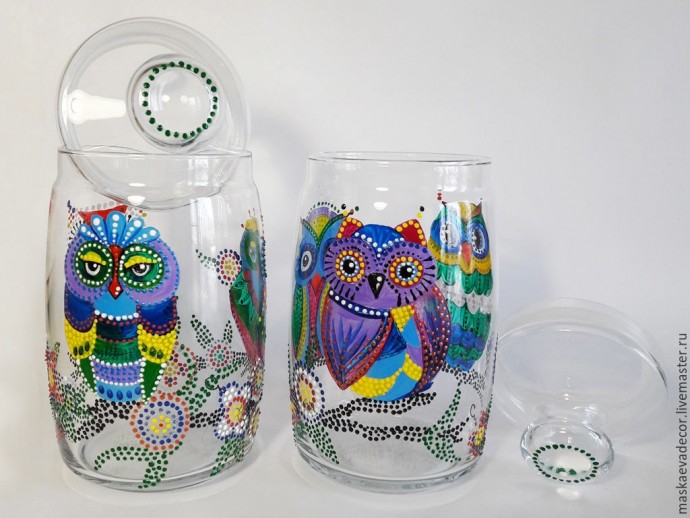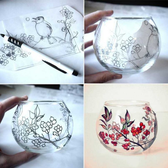 Какое счастье, что современным рукодельницам доступны краски по стеклу, которые позволяют создавать такие восхитительно прекрасные творения из самой обычной посуды.