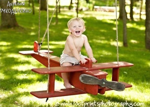 Там, где ребенка любят, сделать ему качели в виде самолета совсем не проблема.
