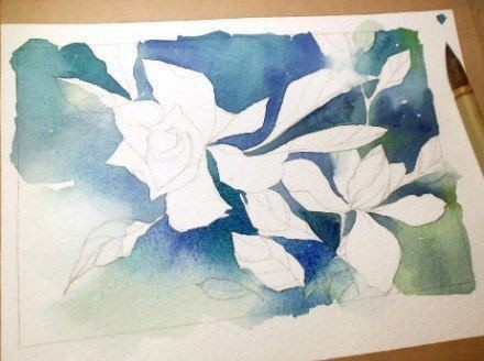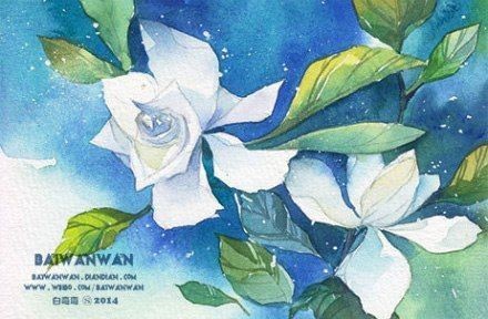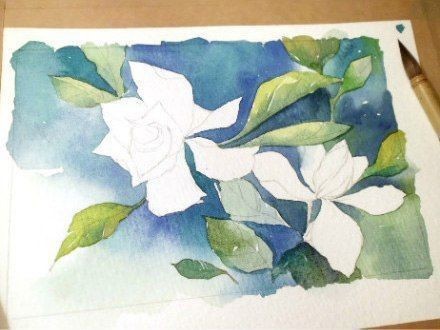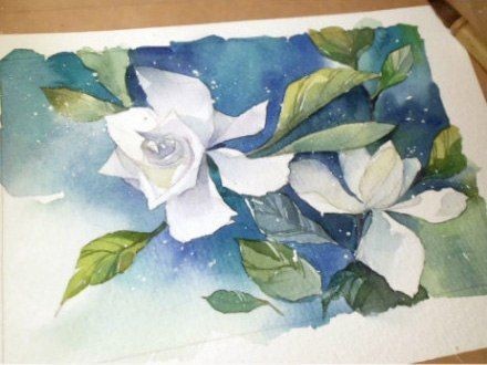 Белые цветы на синем фоне