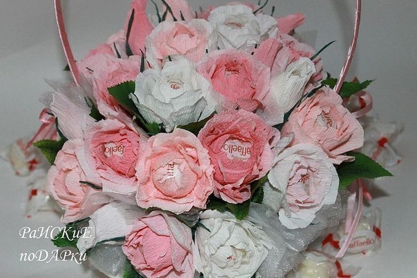Букет роз из гофробумаги: мастер-классБукет роз из гофробумаги обладает сладким секретом в виде конфеты внутри.Вы можете выбрать те конфеты, которые вам больше по душе.Творите и де...