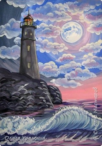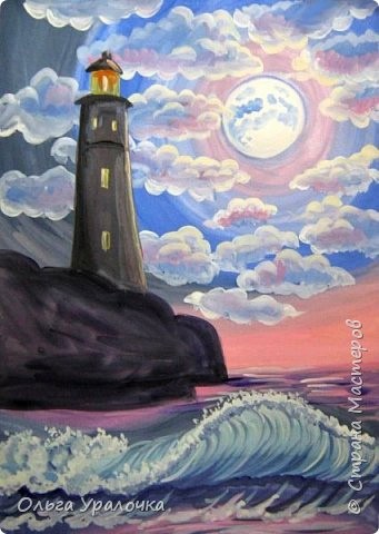 Рисуем маяк на берегу бурного моря, потому что девятый вал всегда магнетизировал внимание каждого, кто его видел.