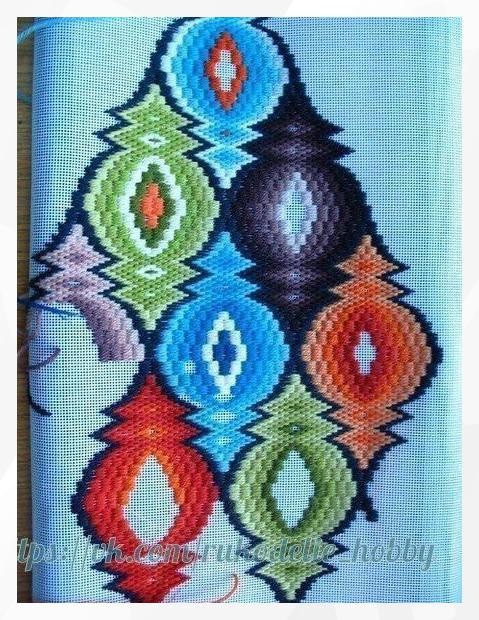 Барджелло — это счетная вышивка выполненная повторяющимися в определенной последовательности вертикальными плотно прилегающими друг к другу плоскими стежками, длина и цвет которых изменяется в зависимости от заданного геометрического узора.