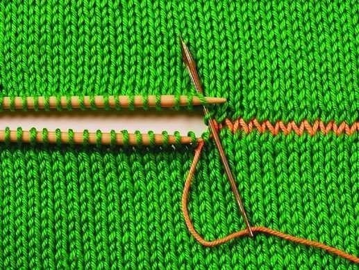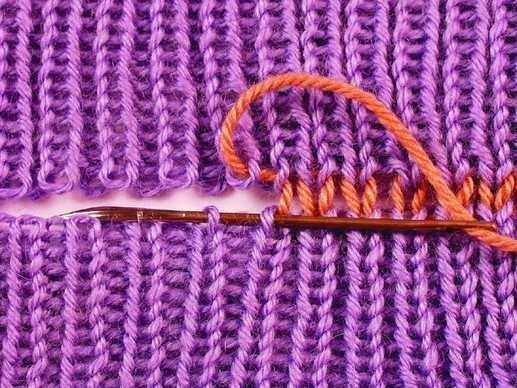 Оформление горловины при вязанииОсновное изделие вяжется на спицах.Но само декорирование производится крючком.