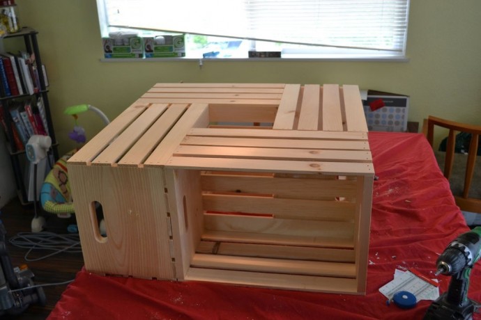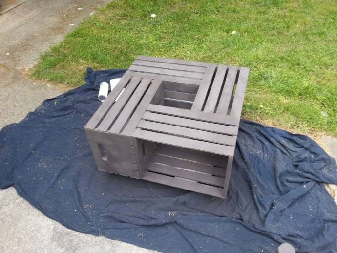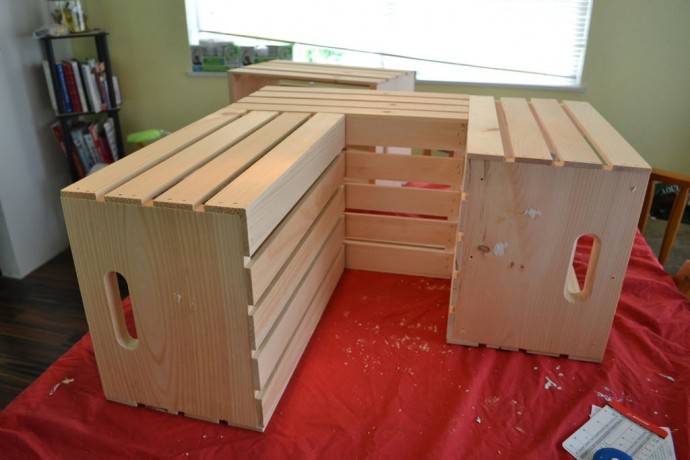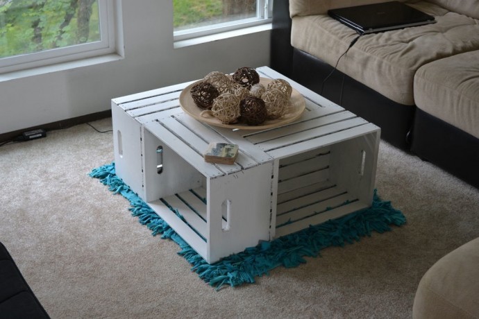 Деревянные ящики от фруктов, овощей или других предметов — универсальный материал для создания мебели своими руками. Один ящик — это уже тумбочка или табурет, два — небольшой, а четыре — большой журнальный столик.