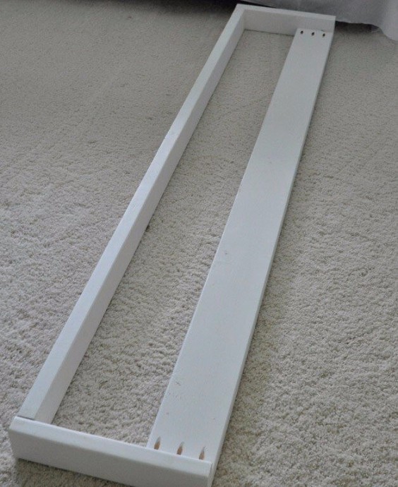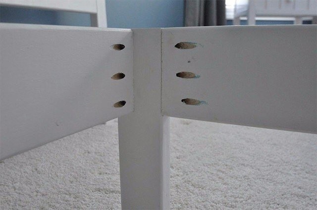 Настала очередь реечного дна. Первая и последняя рейки должны примыкать к передней и задней стенкам каркаса, остальные – равномерно распределены между ними (расстояние между рейками будет составлять 10 см). Ну, вот вы почти и закончили изготовление каркаса кровати своими руками. К сожалению, время сна еще не настало. Я люблю вздремнуть. Я мечтаю, чтобы тихий час сделали обязательным на законодательном уровне... Впрочем, я отвлекся... Прикрепите готовый каркас к изголовью. Я использовал для этого пару длинных винтов и Г-образные скобы. Используйте шпатлевку по дереву, чтобы скрыть все отверстия и щели в местах сочленения элементов. Отшлифуйте и покрасьте деревянную поверхность (я нанес два слоя краски до сборки конструкции и один после). Осталось положить матрас, постелить простынь и одеяло и наслаждаться результатом вашего нелегкого труда.