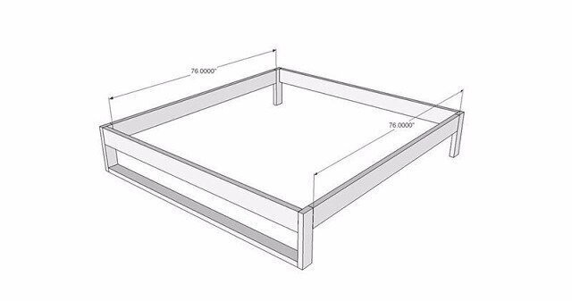 Подробнее смотрите в материале: Что покупателю нужно знать про размеры кроватей King size (1.9х2 м): стенки рамы – 5х15х190 см (4 шт.) ножки – 5х10х38 см (4 шт.) опора реечного дна – 5х5х200 см (2 шт.) нижняя часть передней «стенки» – 5х10х190 см элементы реечного дна – 2.5х7.5х190 см (13 шт.) центральный опорный брусок – 5х10х200 см дополнительная (центральная) ножка – 5х10х23 см вставки для углов – из обрезка 5х15 см доски выпилить прямоугольный треугольник с катетами равными 14 см.