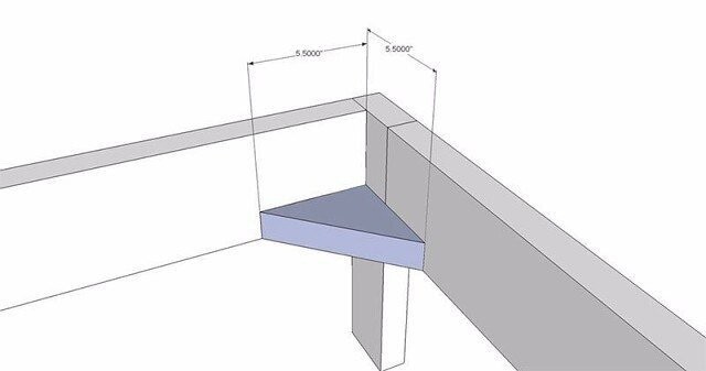 - вставки для углов – из обрезка 5х15 см доски выпилить прямоугольный треугольник с катетами равными 14 см.
