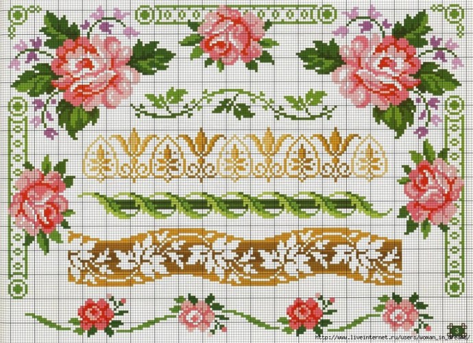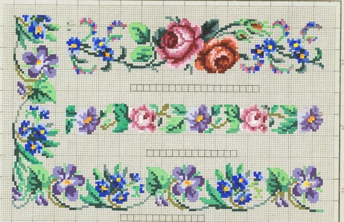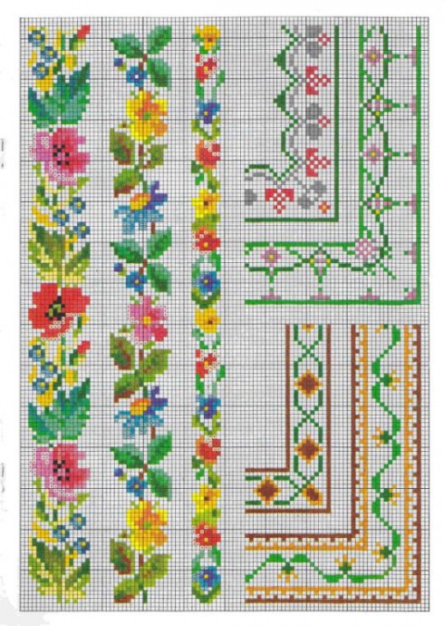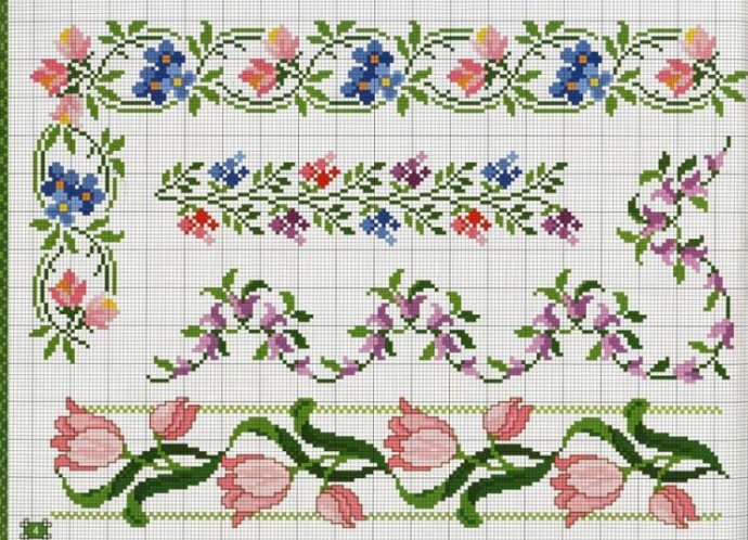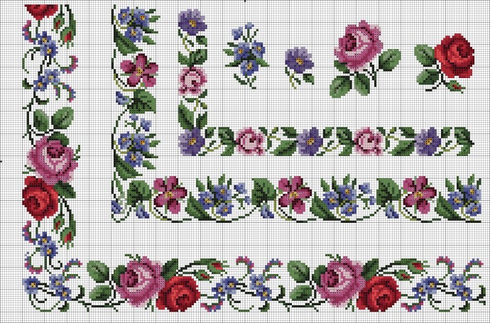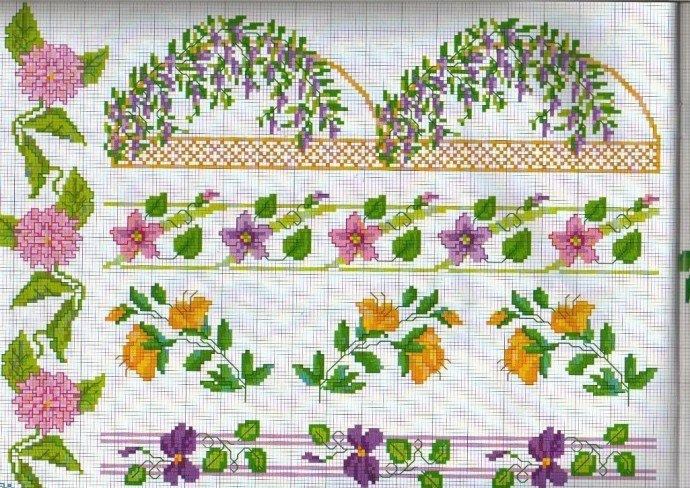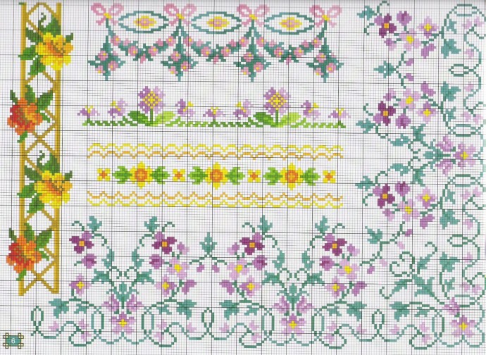 Оригинальные канты и бордюры с цветами для красивой отделки края салфеток и скатертей.