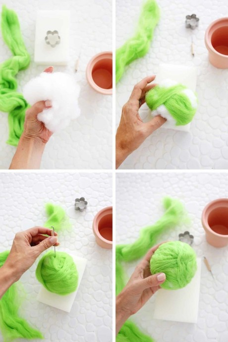 Валяная игольница в виде кактуса традиционно делается из шерсти.