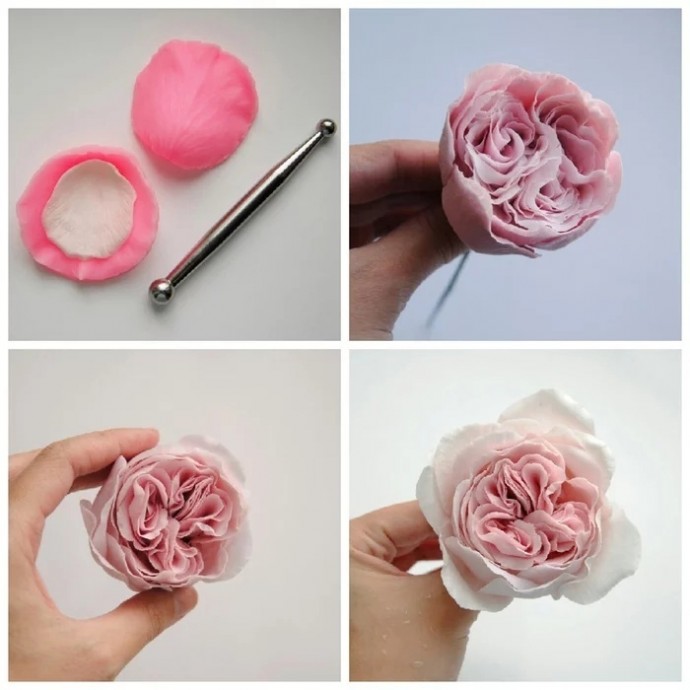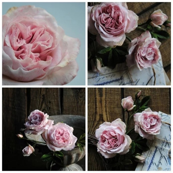 Винтажные, слегка растрепанные цветы словно сошли со старинных коллекционных открыток. Эти розы прекрасно сочетаются со всевозможными крупными и мелкими цветами в букетах и могут украсить собой практически любую цветочную композицию.Холодным фарфором (Cold porcelain) называют особую смесь из кукурузного крахмала, клея, масла и глицерина, которая используется для художественной лепки. Холодный фарфор на сегодняшний день является абсолютно безвредным, удобным и весьма дешевым материалом для лепки.