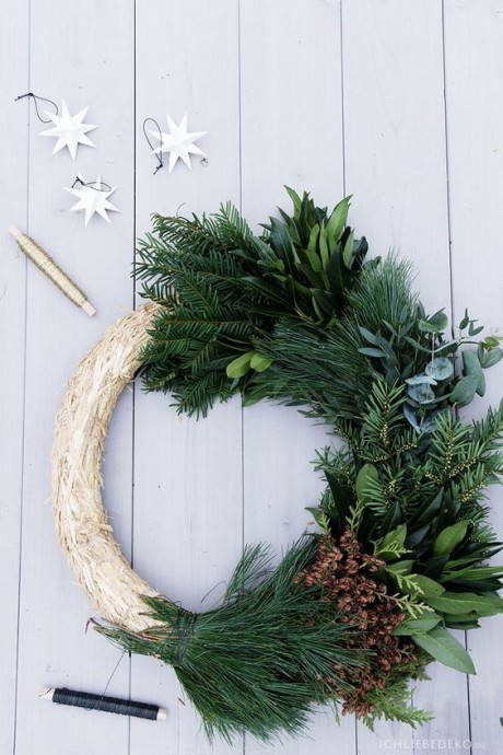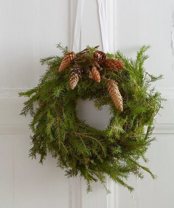 Идеи декоративных веночков из еловых веточек представлены для вашего вдохновления, чтобы открыть простор для фантазии на эту тему.