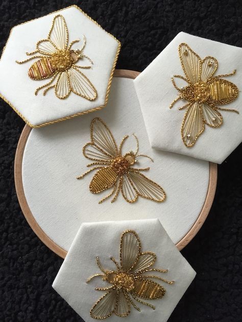 Объёмная вышивка насекомых вполне может заменить праздничные брошки во многих случаях.