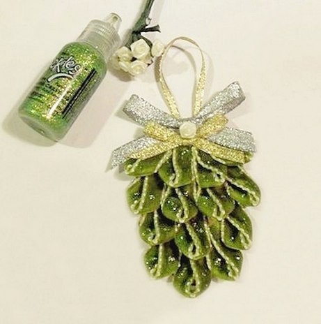 Новогодняя шишка из ленточек на основе картона