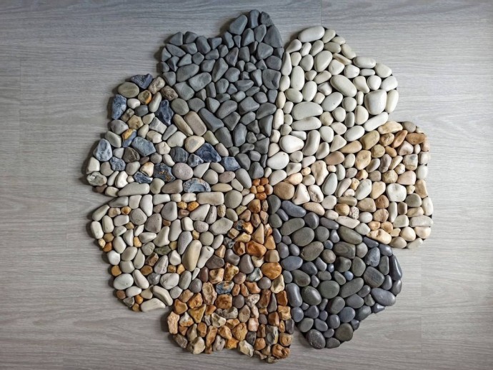 Необходимые материалы: - Резиновая основа - Галька разных размеров и оттенков - Клей (например, Универсальный прозрачный клей Момент Кристалл). Инструкция по изготовлению коврика...