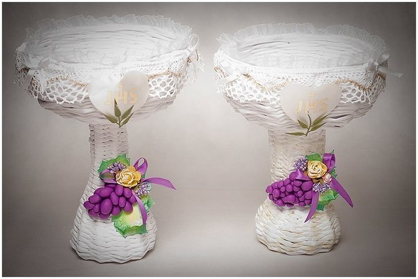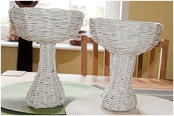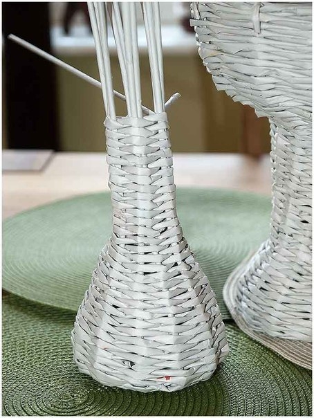 Поделки из газетных трубочек похожи на сплетенные из лозы.При этом они почти ничего не стоят.