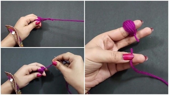 После этого связываем ее с двух сторон, продевая нитку внутрь.